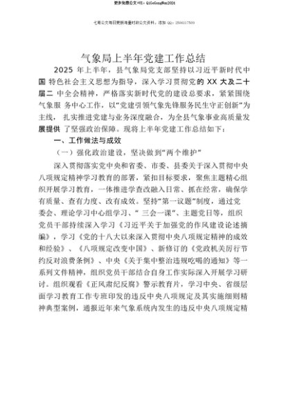 【七哥公文】2025年:【七哥公文】气象局上半年党建工作总结+更多免费公文+VX:QiGeGongWen2024+更多免费公文+VX:QiGeGongWen2024