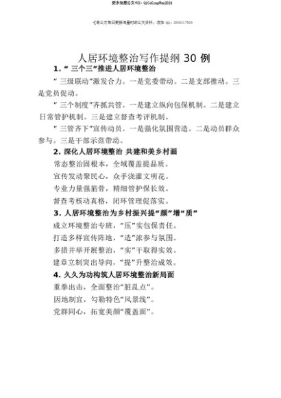 【七哥公文】2025年:【七哥公文】人居环境整治写作提纲30例+更多免费公文+VX:QiGeGongWen2024+更多免费公文+VX:QiGeGongWen2024