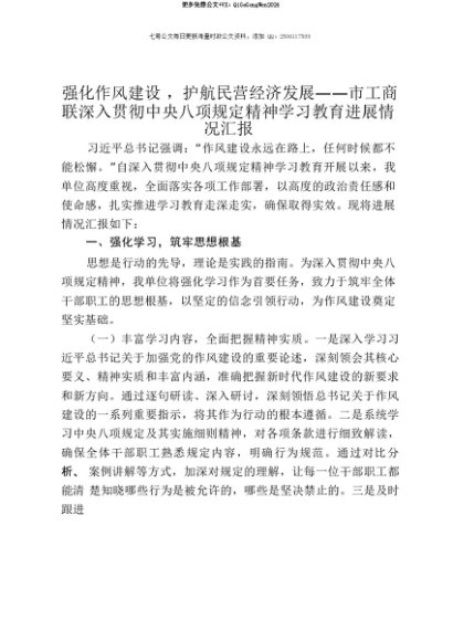【七哥公文】2025年:【七哥公文】强化作风建设,护航民营经济发展——市工商联深入贯彻中央八项规定精神学习教育进展情况汇报+更多免费公文+VX:QiGeGongWen2024+更多免费公文+VX:QiGeGongWen2024