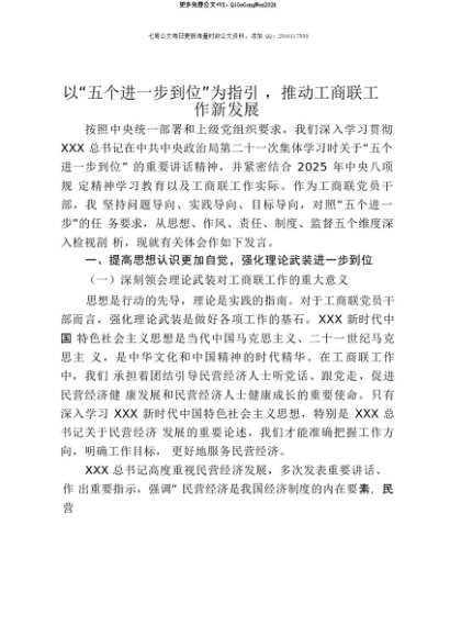 【七哥公文】2025年:【七哥公文】工商联党员干部关于“五个进一步到位”的重要讲话精神学习研讨发言材料(学习第二十一次集体学习时讲话精神)+更多免费公文+VX:QiGeGongWen2024+更多免费公文+VX:QiGeGongWen2024