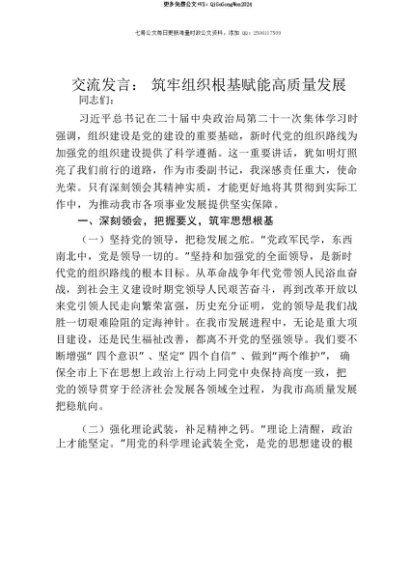 【七哥公文】2025年:【七哥公文】交流发言:筑牢组织根基 赋能高质量发展+更多免费公文+VX:QiGeGongWen2024+更多免费公文+VX:QiGeGongWen2024