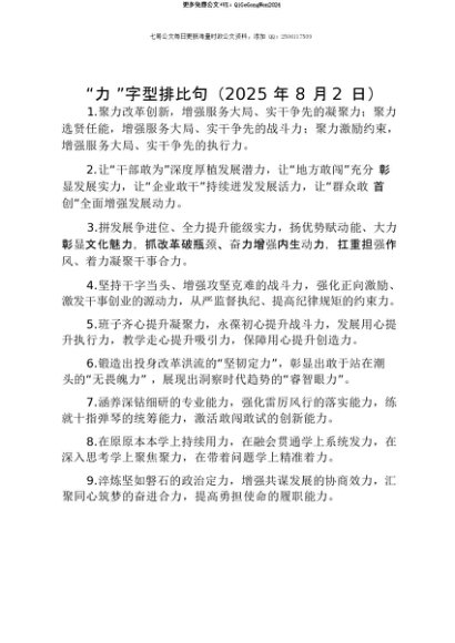 【七哥公文】2025年:【七哥公文】“力”字型排比句(2025年8月2日)+更多免费公文+VX:QiGeGongWen2024+更多免费公文+VX:QiGeGongWen2024