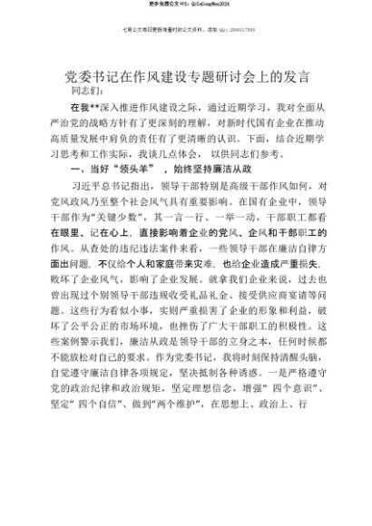 【七哥公文】2025年:【七哥公文】党委书记在作风建设专题研讨会上的发言+更多免费公文+VX:QiGeGongWen2024+更多免费公文+VX:QiGeGongWen2024