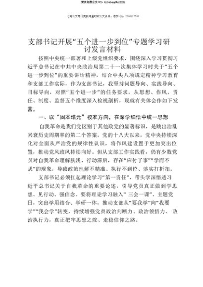 【七哥公文】2025年:【七哥公文】2025支部书记开展“五个进一步到位”专题学习研讨发言材料(学习第二十一次集体学习时讲话精神)+更多免费公文+VX:QiGeGongWen2024+更多免费公文+VX:QiGeGongWen2024