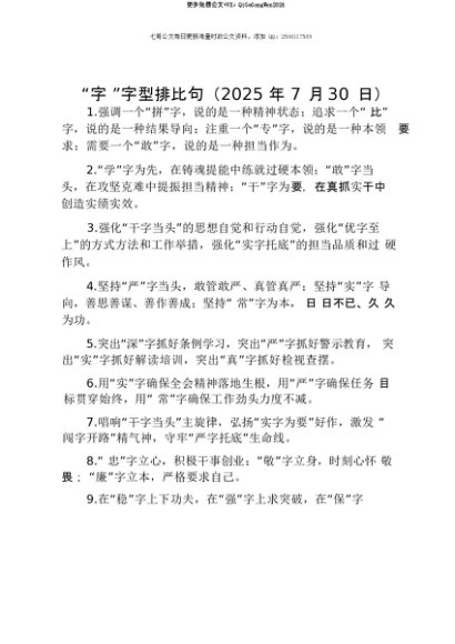 【七哥公文】2025年:【七哥公文】“字”字型排比句(2025年7月30日)+更多免费公文+VX:QiGeGongWen2024+更多免费公文+VX:QiGeGongWen2024