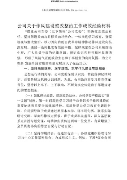 【七哥公文】2025年:【七哥公文】公司关于作风建设整改整治工作成效经验材料+更多免费公文+VX:QiGeGongWen2024+更多免费公文+VX:QiGeGongWen2024