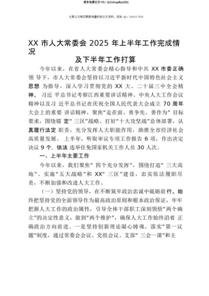 【七哥公文】2025年:【七哥公文】XX市人大常委会2025年上半年工作完成情况及下半年工作打算+更多免费公文+VX:QiGeGongWen2024+更多免费公文+VX:QiGeGongWen2024