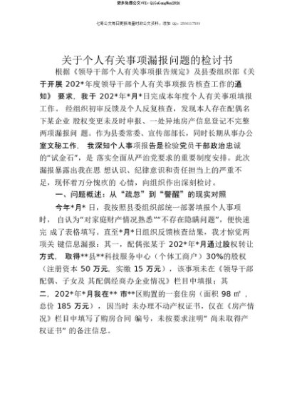【七哥公文】2025年:【七哥公文】关于个人有关事项漏报问题的检讨书+更多免费公文+VX:QiGeGongWen2024+更多免费公文+VX:QiGeGongWen2024
