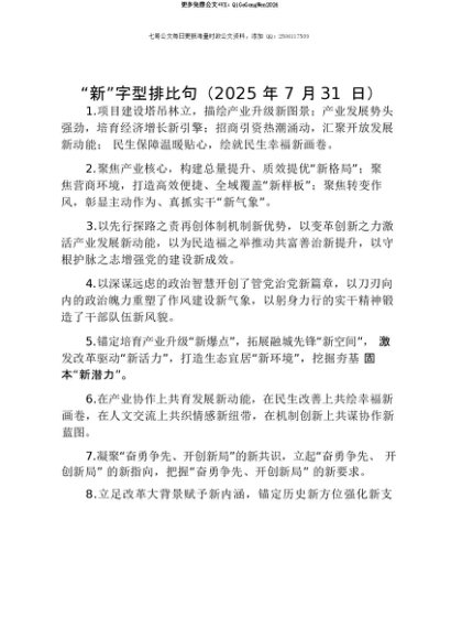 【七哥公文】2025年:【七哥公文】“新”字型排比句(2025年7月31日)+更多免费公文+VX:QiGeGongWen2024+更多免费公文+VX:QiGeGongWen2024
