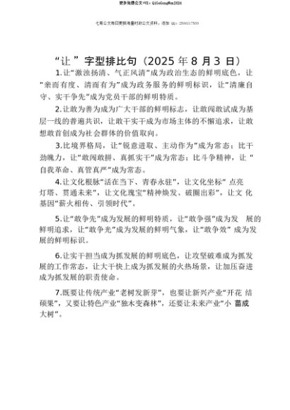 【七哥公文】2025年:【七哥公文】“让”字型排比句(2025年8月3日)+更多免费公文+VX:QiGeGongWen2024+更多免费公文+VX:QiGeGongWen2024