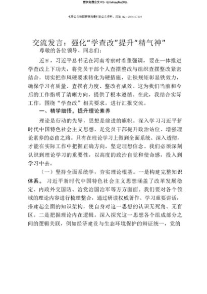 【七哥公文】2025年:【七哥公文】交流发言:强化“学查改” 提升“精气神”+更多免费公文+VX:QiGeGongWen2024+更多免费公文+VX:QiGeGongWen2024