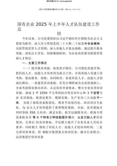 【七哥公文】2025年:【七哥公文】国有企业2025年上半年人才队伍建设工作总结+更多免费公文+VX:QiGeGongWen2024+更多免费公文+VX:QiGeGongWen2024