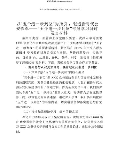 【七哥公文】2025年:【七哥公文】公安局党员干部关于“五个进一步到位”的重要讲话精神学习研讨发言材料(学习第二十一次集体学习时讲话精神)+更多免费公文+VX:QiGeGongWen2024+更多免费公文+VX:QiGeGongWen2024