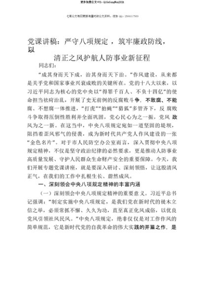 【七哥公文】2025年:【七哥公文】党课讲稿:严守八项规定,筑牢廉政防线,以清正之风护航人防事业新征程+更多免费公文+VX:QiGeGongWen2024+更多免费公文+VX:QiGeGongWen2024