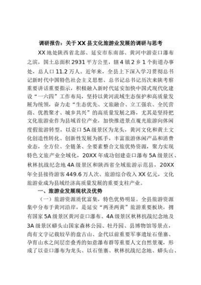 【七哥公文】2025年:调研报告:关于XX县文化旅游业发展的调研与思考+更多免费公文+VX:QiGeGongWen2024