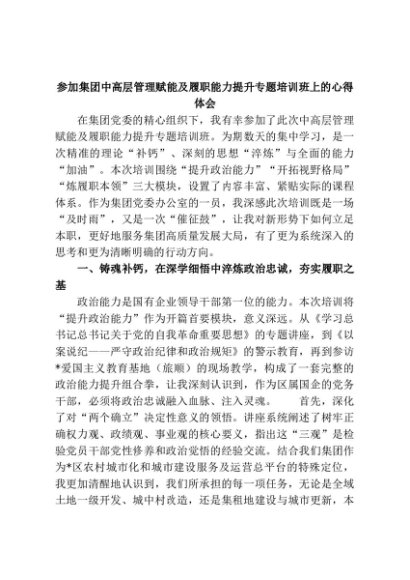【七哥公文】2025年:参加集团中高层管理赋能及履职能力提升专题培训班上的心得体会+更多免费公文+VX:QiGeGongWen2024