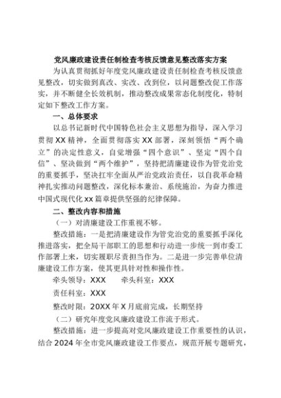 / 【七哥公文】2025年:党风廉政建设责任制检查考核反馈意见整改落实方案+更多免费公文+VX:QiGeGongWen2024
