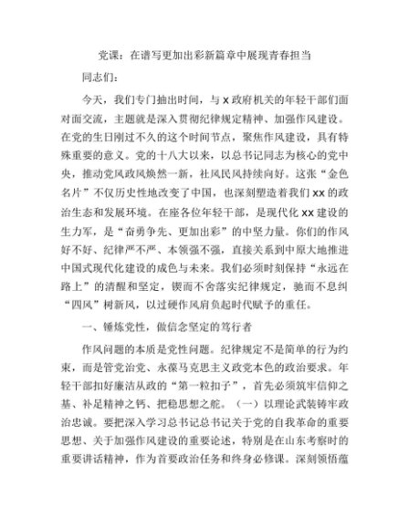 / 【七哥公文】2025年:党课:在谱写更加出彩新篇章中展现青春担当+更多免费公文+VX:QiGeGongWen2024