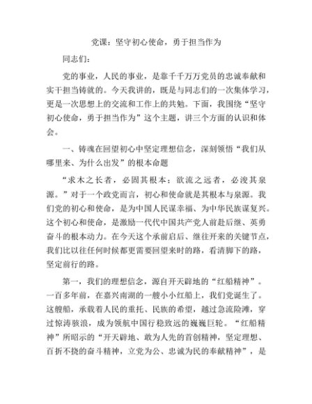 / 【七哥公文】2025年:党课:坚守初心使命,勇于担当作为+更多免费公文+VX:QiGeGongWen2024