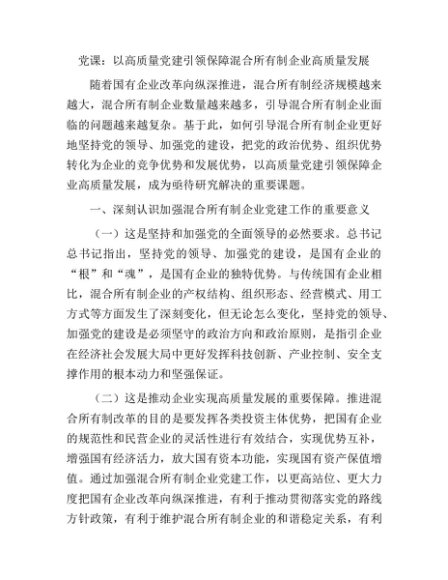 【七哥公文】2025年:党课:以高质量党建引领保障混合所有制企业高质量发展+更多免费公文+VX:QiGeGongWen2024