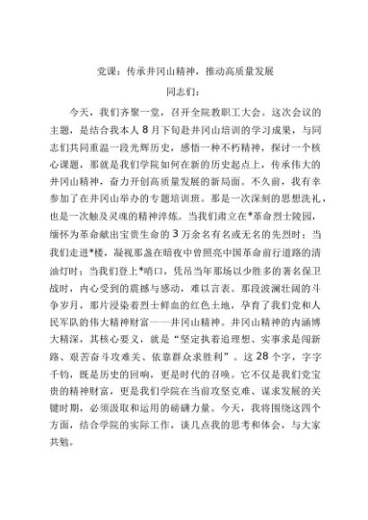 / 【七哥公文】2025年:党课:传承井冈山精神,推动高质量发展+更多免费公文+VX:QiGeGongWen2024