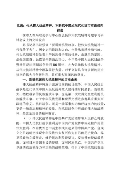 【七哥公文】2025年:党课:传承伟大抗战精神,不断把中国式现代化我市实践推向前进+更多免费公文+VX:QiGeGongWen2024