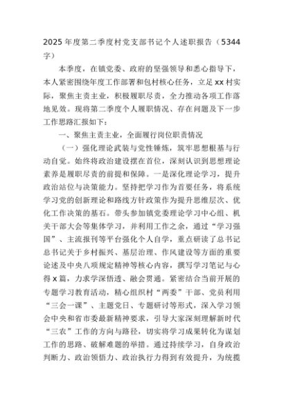 【七哥公文】2025年:2025年度第二季度村党支部书记个人述职报告(5344字)+更多免费公文+VX:QiGeGongWen2024