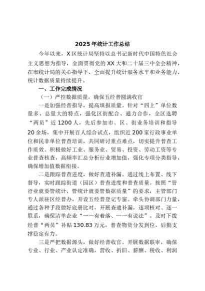 / 【七哥公文】2025年:2025年统计工作总结+更多免费公文+VX:QiGeGongWen2024