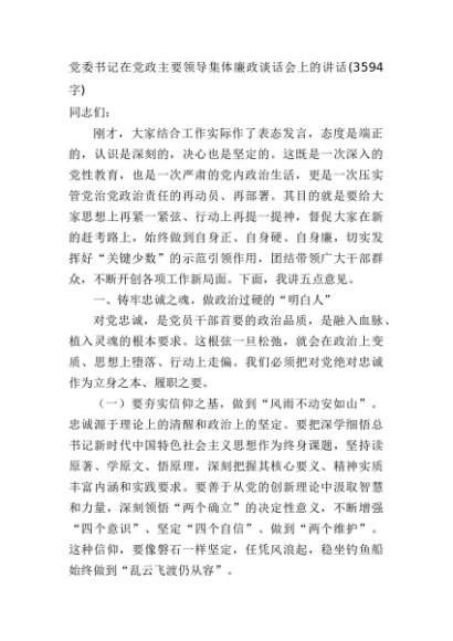 【七哥公文】2025年:党委书记在党政主要领导集体廉政谈话会上的讲话(3594字)+更多免费公文+VX:QiGeGongWen2024