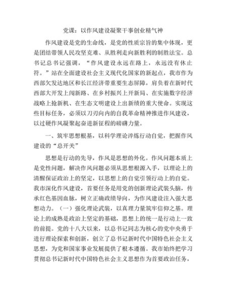 / 【七哥公文】2025年:党课:以作风建设凝聚干事创业精气神+更多免费公文+VX:QiGeGongWen2024