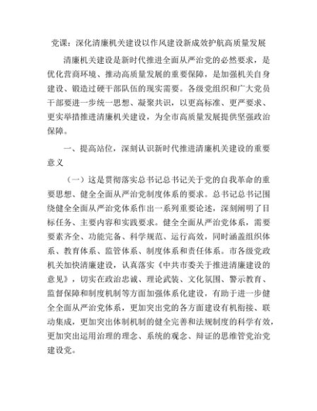 【七哥公文】2025年:党课:深化清廉机关建设 以作风建设新成效护航高质量发展+更多免费公文+VX:QiGeGongWen2024