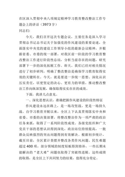 【七哥公文】2025年:在区深入贯彻中央八项规定精神学习教育整改整治工作专题会上的讲话(3973字)+更多免费公文+VX:QiGeGongWen2024