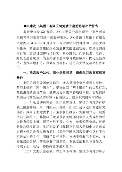 / 【七哥公文】2025年:XX建设(集团)有限公司党委专题的总结评估报告+更多免费公文+VX:QiGeGongWen2024