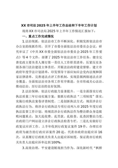 【七哥公文】2025年:XX市司法2025年上半年工作总结和下半年工作计划+更多免费公文+VX:QiGeGongWen2024