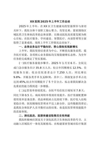/ 【七哥公文】2025年:XX医院2025年上半年工作总结+更多免费公文+VX:QiGeGongWen2024