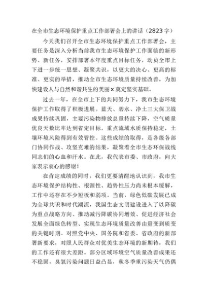 【七哥公文】2025年:在全市生态环境保护重点工作部署会上的讲话(2823字)+更多免费公文+VX:QiGeGongWen2024