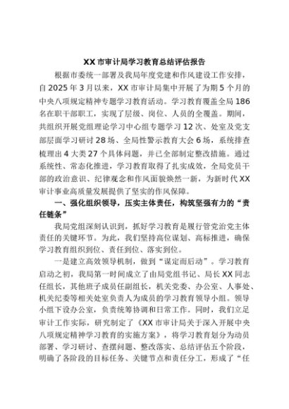 / 【七哥公文】2025年:XX市审计局学习教育总结评估报告+更多免费公文+VX:QiGeGongWen2024