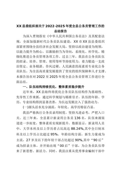 【七哥公文】2025年:XX县委组织部关于2022-2025年度全县公务员管理工作的总结报告+更多免费公文+VX:QiGeGongWen2024
