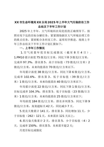 【七哥公文】2025年:XX市生态环境局XX分局2025年上半年大气污染防治工作总结及下半年工作计划+更多免费公文+VX:QiGeGongWen2024