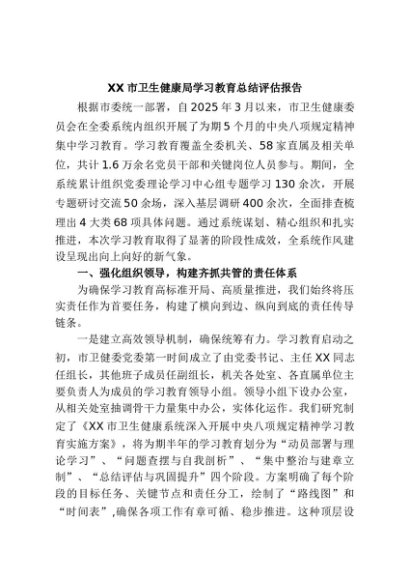 / 【七哥公文】2025年:XX市卫生健康局学习教育总结评估报告+更多免费公文+VX:QiGeGongWen2024