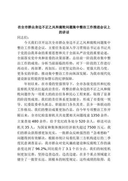 【七哥公文】2025年:在全市群众身边不正之风和腐败问题集中整治工作推进会议上的讲话+更多免费公文+VX:QiGeGongWen2024