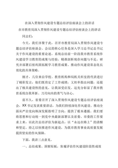 【七哥公文】2025年:在深入贯彻作风建设专题总结评估座谈会上的讲话+更多免费公文+VX:QiGeGongWen2024