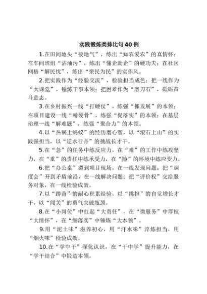 / 【七哥公文】2025年:实践锻炼类排比句40例+更多免费公文+VX:QiGeGongWen2024