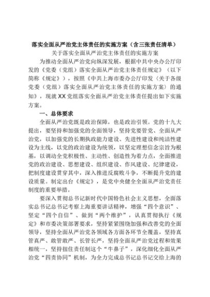【七哥公文】2025年:落实全面从严治党主体责任的实施方案(含三张责任清单)+更多免费公文+VX:QiGeGongWen2024