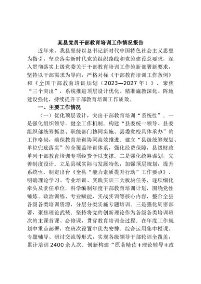 / 【七哥公文】2025年:某县党员干部教育培训工作情况报告+更多免费公文+VX:QiGeGongWen2024