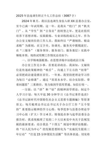 【七哥公文】2025年:2025年县选调生转正个人工作总结(3087字)+更多免费公文+VX:QiGeGongWen2024