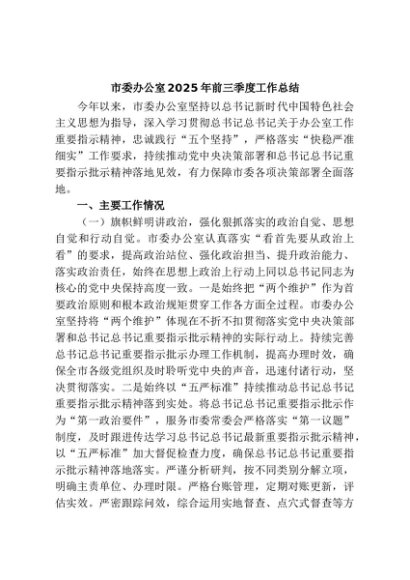 / 【七哥公文】2025年:市委办公室2025年前三季度工作总结+更多免费公文+VX:QiGeGongWen2024
