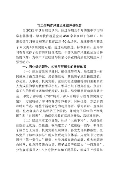 / 【七哥公文】2025年:市工信局作风建设总结评估报告+更多免费公文+VX:QiGeGongWen2024