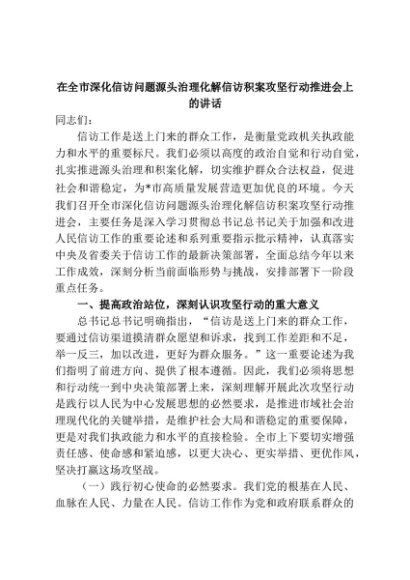 【七哥公文】2025年:在全市深化信访问题源头治理化解信访积案攻坚行动推进会上的讲话+更多免费公文+VX:QiGeGongWen2024