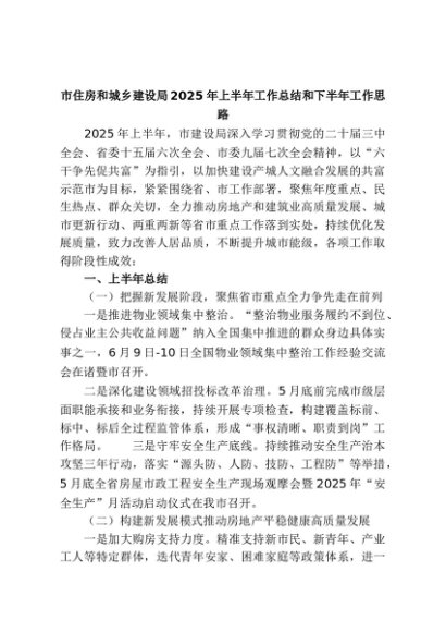 【七哥公文】2025年:市住房和城乡建设局2025年上半年工作总结和下半年工作思路+更多免费公文+VX:QiGeGongWen2024